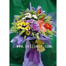 法式設計之奪目耀眼鮮花籃組合,包括荷蓮、紅掌、太陽花、康乃馨、天堂鳥、襯花及綠葉等,適合任何送禮場合。 |