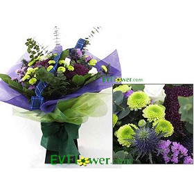 花束包括小翠菊、荷蘭田園雜錦襯花及綠葉等,清雅秀麗,送上無數祝福。