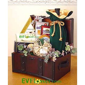 豪華禮品籃內盛滿美味可口美食,包括萄葡汁一瓶,瑞士朱古力禮盒、MrsField曲奇、果仁、雜錦乾果、西茶及英式餅乾,並以絲帶裝飾,叫人喜出望外。