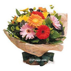 10pcs Gerberas, exotic Matching Flowers and Greens. |