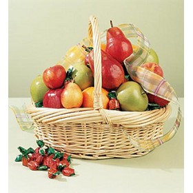 Fresh fruits in a country style basket, a memorable expression of endearment. |