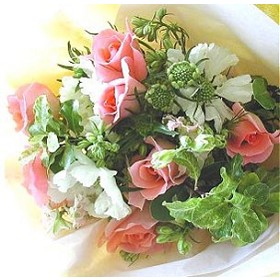 Stylish bouquet of 11pcs Roses, exotic Matching Flowers and Greens.