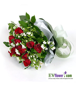 12朵雅麗玫瑰,襯花及綠葉,讓您與摯愛共度佳節。