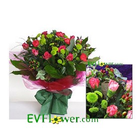 11朵康乃馨、荷蘭田園襯花及綠葉,華麗典雅,難以忘懷。  |
