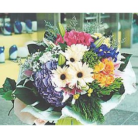 6支太陽花、6支康乃馨、雜錦田園襯花及綠葉,華麗典雅,難以忘懷。 |