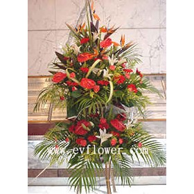 French combination of beautiful flowers that light up the sky ( Lilies, Gerberas, Red Anthurium, Bird of Pardise, Matching Flowers and Greens ) . |