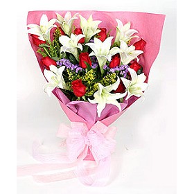 10 Red Roses and 10 Lilies, exotic Matching Flowers and Greens. |