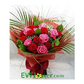 Stylish bouquet of 18pcs Roses, exotic Matching Flowers and Greens.  |